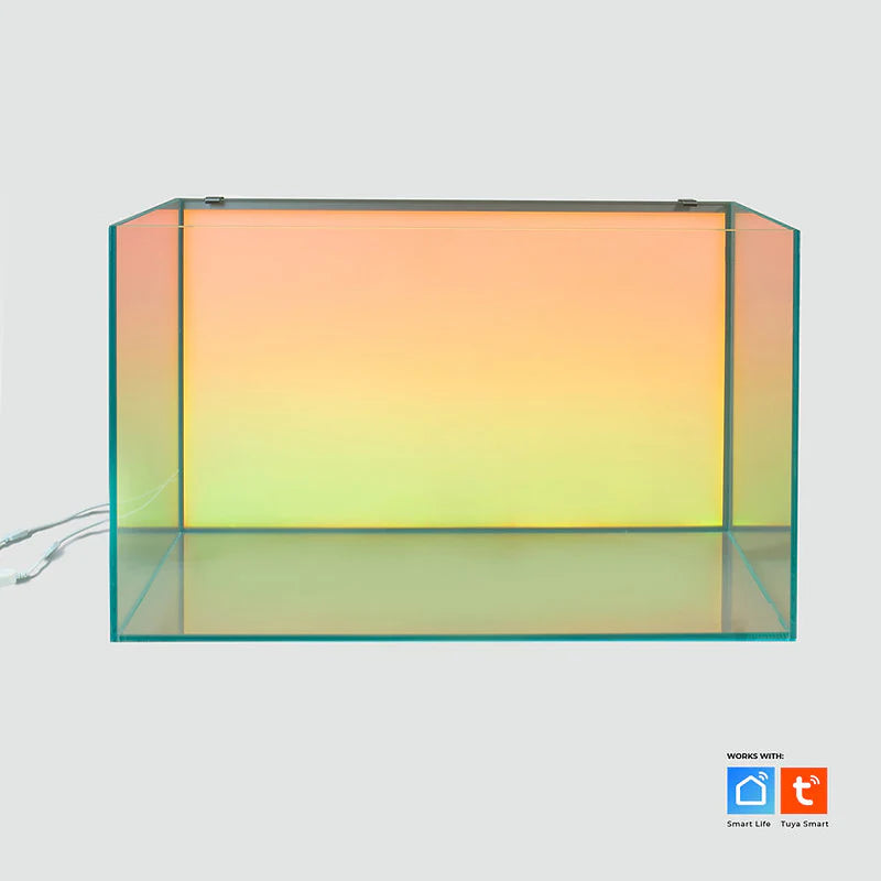 Dank zweier unabhängiger Abschnitte von RGB-Bändern kannst du den unteren und oberen Teil des Panels unabhängig voneinander steuern, um eine breite Palette von Farbverläufen zu erhalten. Diese Lösung ermöglicht das praktisch unbegrenzte Mischen von zwei Farben untereinander. Die Steuerung erfolgt über die Anwendung auf dem Telefon (Tuya / Smart Life), mit der du Zeitpläne erstellen und verschiedene Lichteffekte aktivieren kannst. Trotz der Tatsache, dass es sich um ein Farbpanel handelt, hat es auch die Fähigkeit, wie der LED-Lightground weiß zu leuchten.